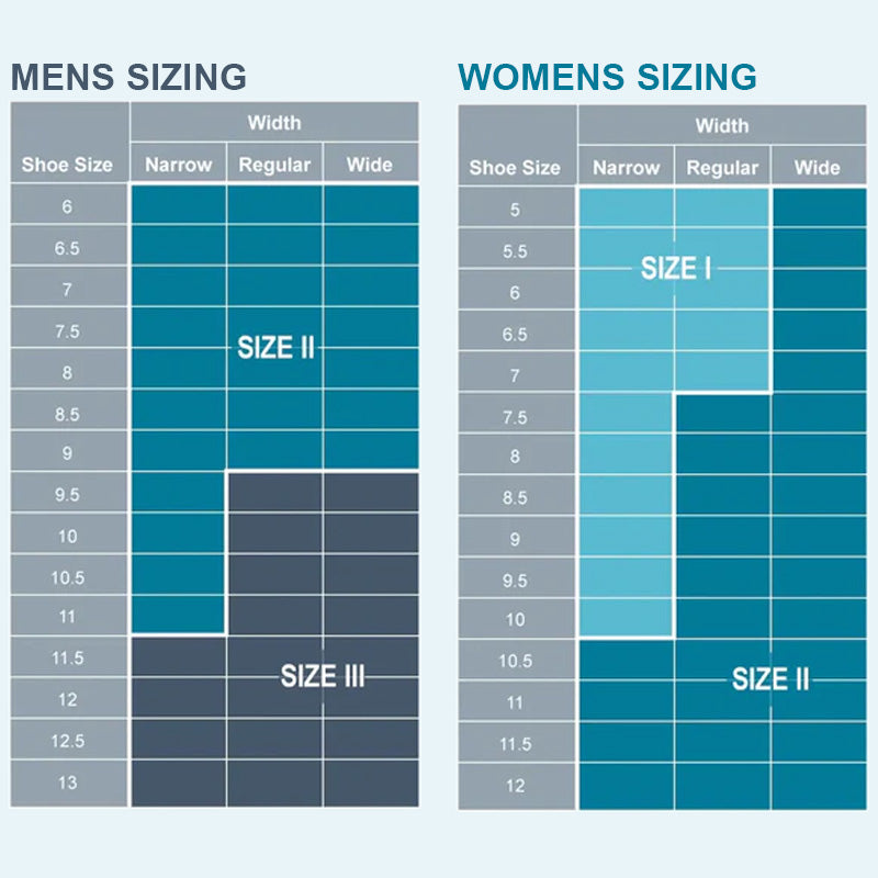 restiffic RLS is one-size-fits-most with fully adjustable straps. Measure around the ball of your foot, then tweak the hook-and-loop closure for a secure, comfortable fit.